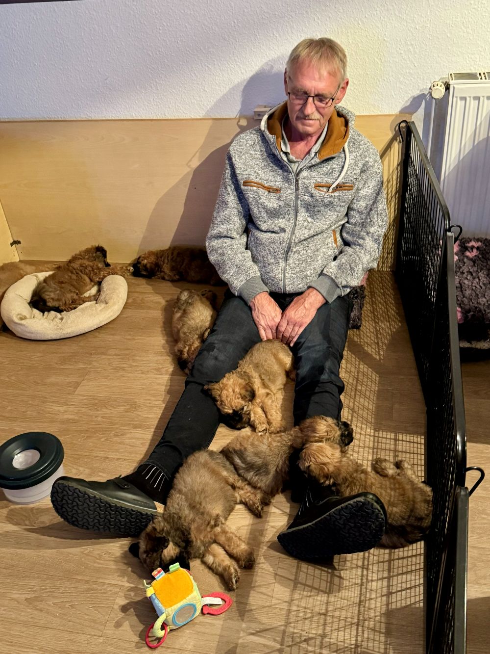 musste Andreas zum ersten Mal, die Endabnahme und die Welpenübergabe der 9 Hundekinder aus dem A-Wurf alleine übernehmen. Er hat es perfekt hinbekommen und alle Welpen wurden den neuen Hundebesitzern übergeben
